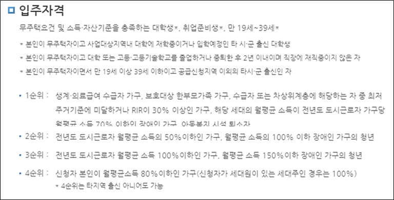 -1순위는 수급자, 2순위는 월평균소득 50%이하면 가능
