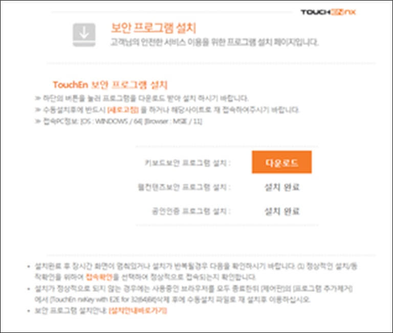 그러면 보안프로그램 설치 안내 창이 뜰 수 있습니다.